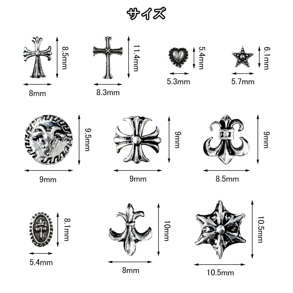 【新春セール】BTtime 50個のパンクネイルアートチャーム ネイルパーツ メタルパーツ 3D スタッズ デコパーツ レトロ 十字架 パンク ネイルリベット ネイルパーツ ネイルデザイン用品DIYクラフトアクセサリー (ヴィンテージシルバー) | yorozuyamart