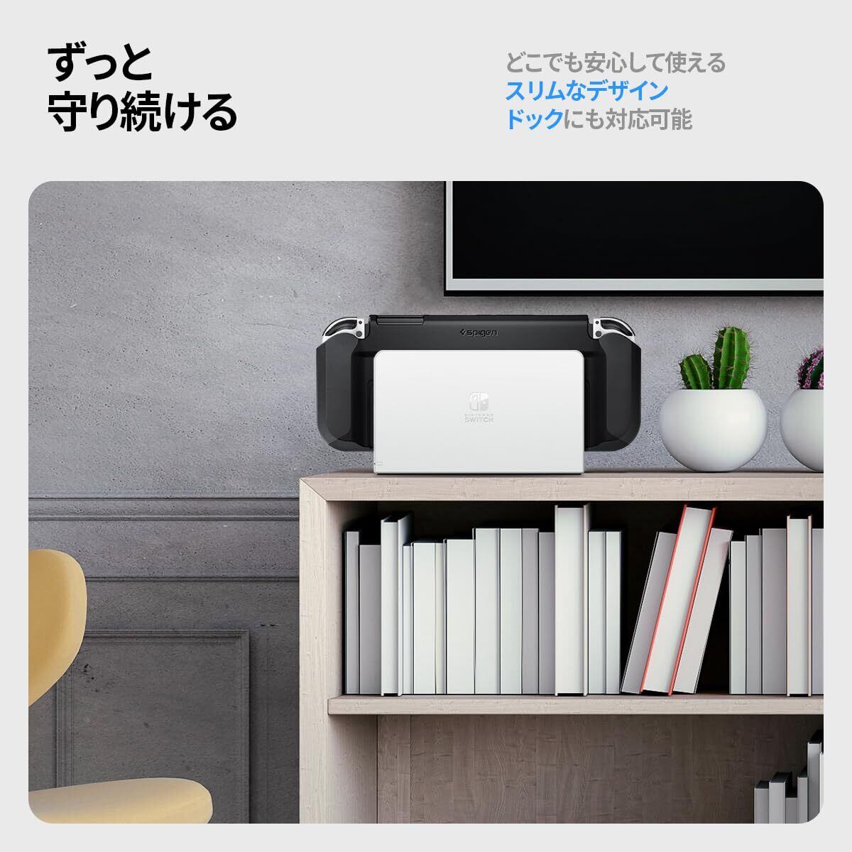 Spigen Switch 有機el カバー ドック対応 スタンド保護 薄型 着脱簡単 耐衝撃 衝撃吸収 滑り止め 傷防止 全面保護 任天堂 ニンテンドー スイッチ OLED ケース シン・フィット ACS04239 (ブラック)