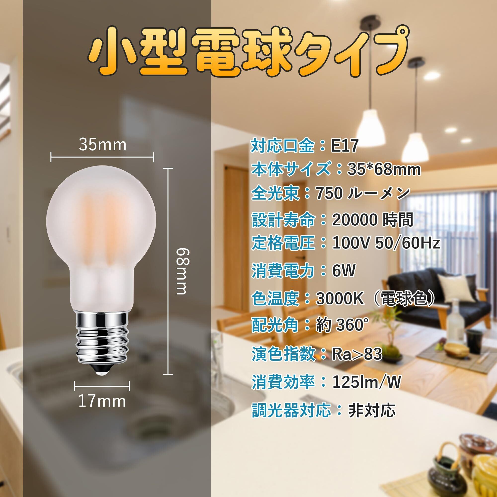 『標準サイズ』E17口金、本体サイズ:Φ35*68mm、伝統的な小型電球のサイズと同じです。LED電球は熱伝導性があり、密閉器具に対応できます。ダウンライト、玄関灯、シャンデリア、天井埋め込みライト、ペンダント器具、卓上ランプなどの照明器具に使用できます。