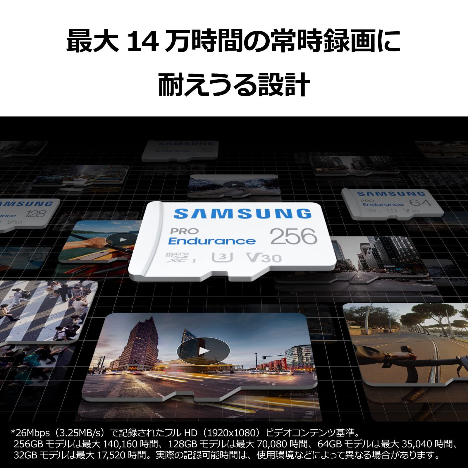 録画耐久性:128GBモデルはフルHD(1920x1080)で最大70,080時間