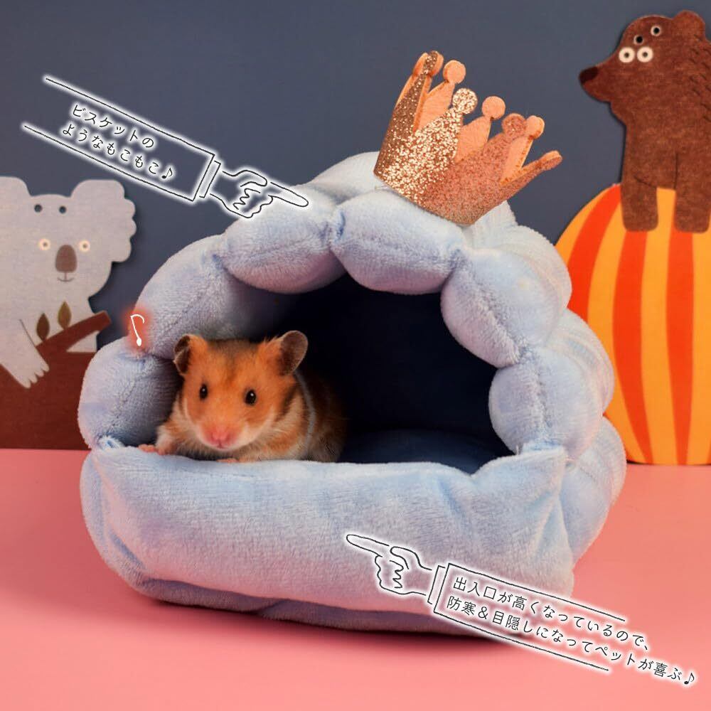 moin moin ハムスター 鳥 インコ リス フクロモモンガ ペット 小動物 ハウス ベッド 家 小屋 寝床 隠れ家 おうち クッション パープル 紫 王冠 クラウン 幅13.5×高さ11×奥行12.5cm ふわふわ もこもこ 暖か 防寒 秋冬 ビスケット ワンポイント モチーフ 2312rh103