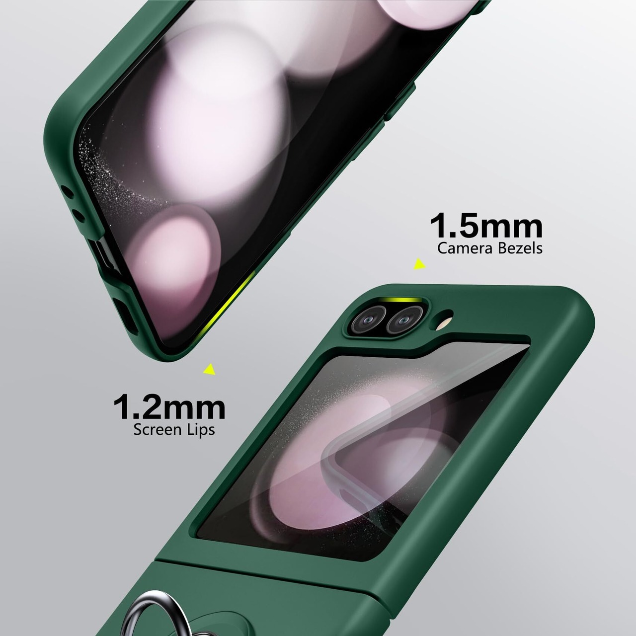 JSTNMEBO Galaxy Z Flip3 用ケース リング付き スタンド機能 レンズ保護 一体型 SC-54B SCG12 スマホケース ハード PC素材 マットな質感 ギャラクシーZ Flip3 5G カバー 衝撃吸収 シンプル 携帯カバー 緑 J07-04