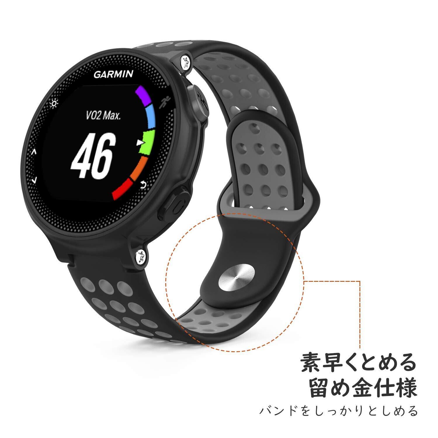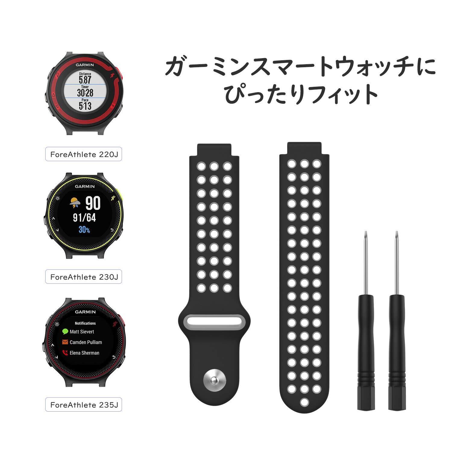 ガーミン235 バンド ATiC ForeAthlete 220/230/235/620/630/735/Approach S20/S5/S6に対応 シリコーン製 腕時計ストラップ バンド ドライバー付き Black + Gray | yorozuyamart