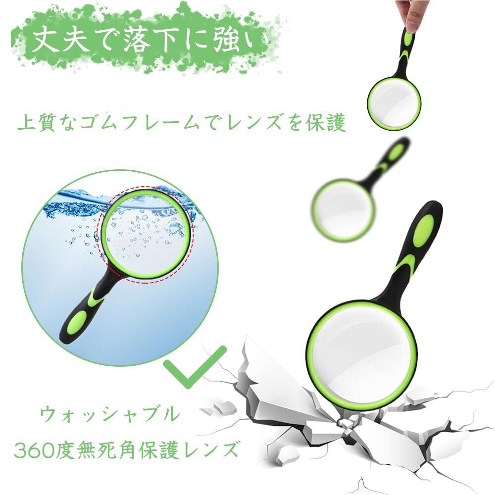 手持ちルーペ ビッグルーペ 拡大鏡 虫眼鏡 レンズ径100mm 高倍率タイプ 10倍拡大 手持ち読書拡大鏡 携帯便利 見やすい 高齢者及び専門家使用可能 趣味観察/新聞/読書/地図/科学教室に使用 (グリーン) | yorozuyamart