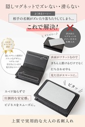 薄型ながらも必要な収納力を備え、ポケットやカバンにスッキリ収まります。さらに、薄型マグネットでしっかりと閉じることができるため、名刺の紛失を防ぎます。職場でも、移動の際も安心して持ち運べます。