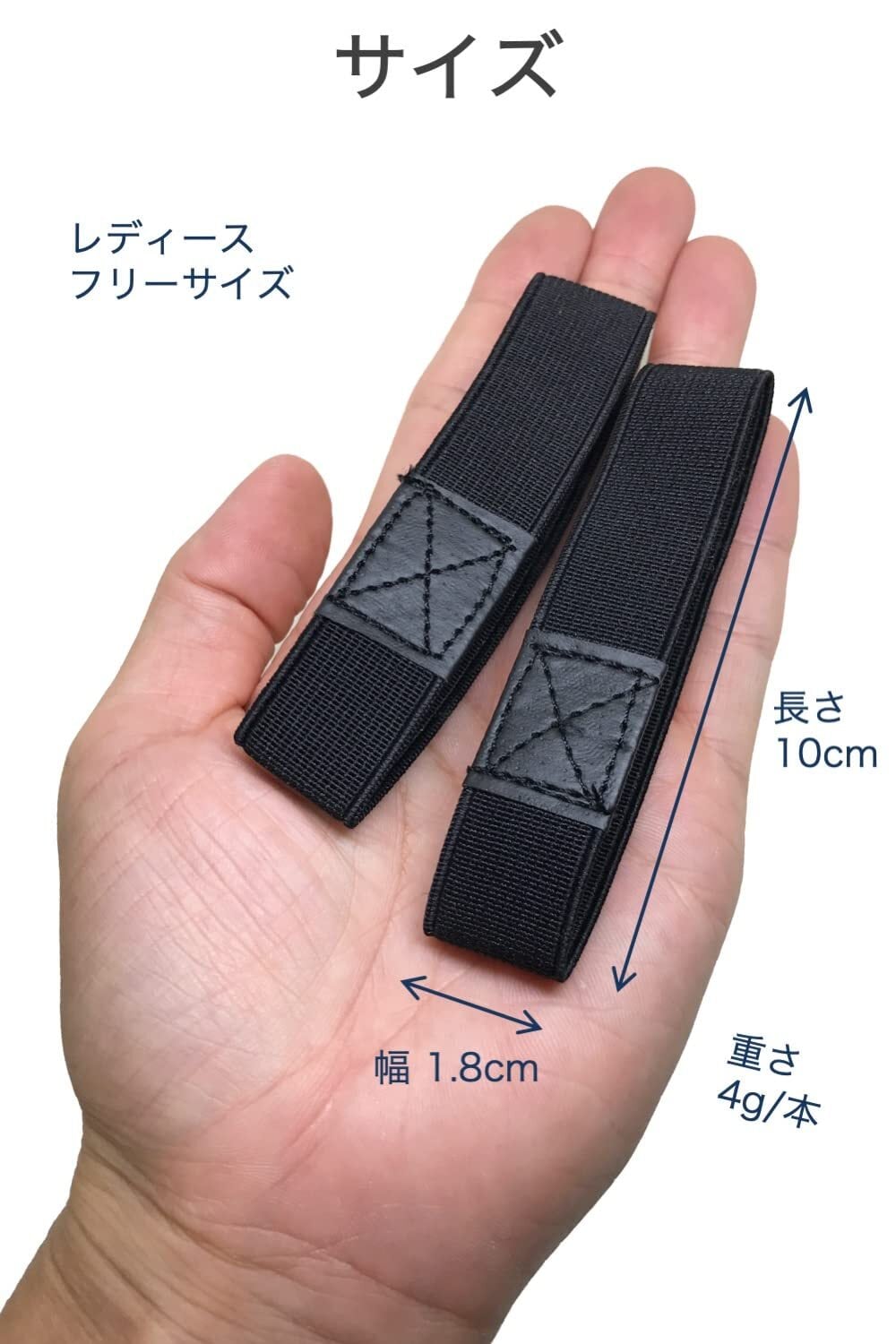 このシューズバンドは、パンプスやサンダルなどに対応しており、脱げ防止やパカパカ防止に効果を発揮します。黒色のデザインがシンプルで、どんなシューズとも合わせやすいのが魅力です。しっかりと固定されることで、安心して歩くことができます。