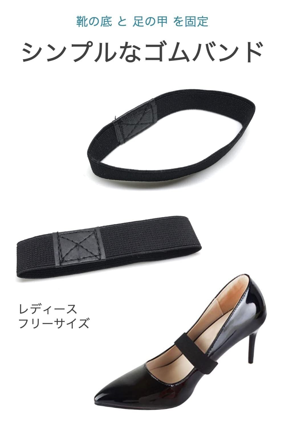 [wumio] シューズバンド 黒 1組セット 脱げ防止 パカパカ防止 パンプスバンド ゴムバンド しっかり 固定 足の甲 フィット 補助 簡単 着脱 シューズ バンド