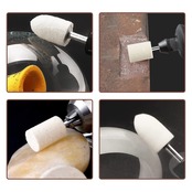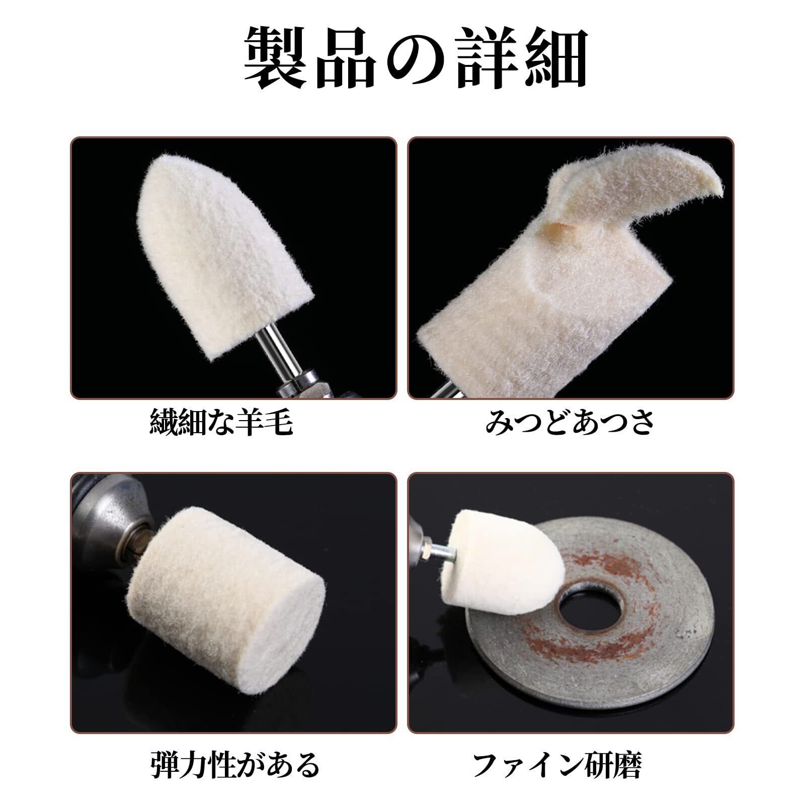 【仕様】:羊毛フェルトバフ形状:円錐型と円筒型、サイズ;総長:46 mm、柄の直径:3 mm、研ぎヘッド径:10 mm、金属棒:27 mm、軸径:3mm、材質:ウール+金属。