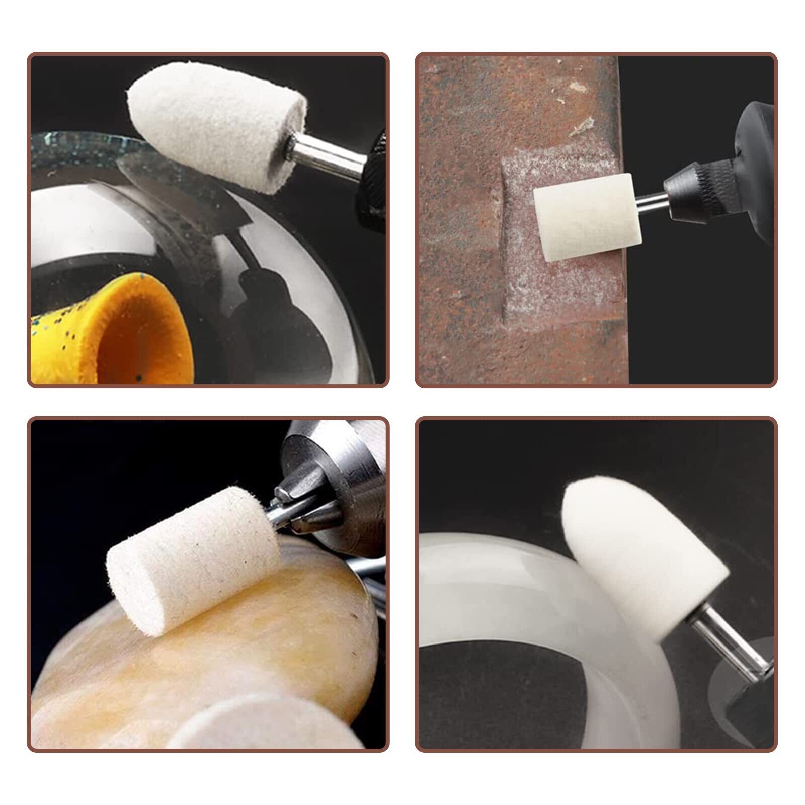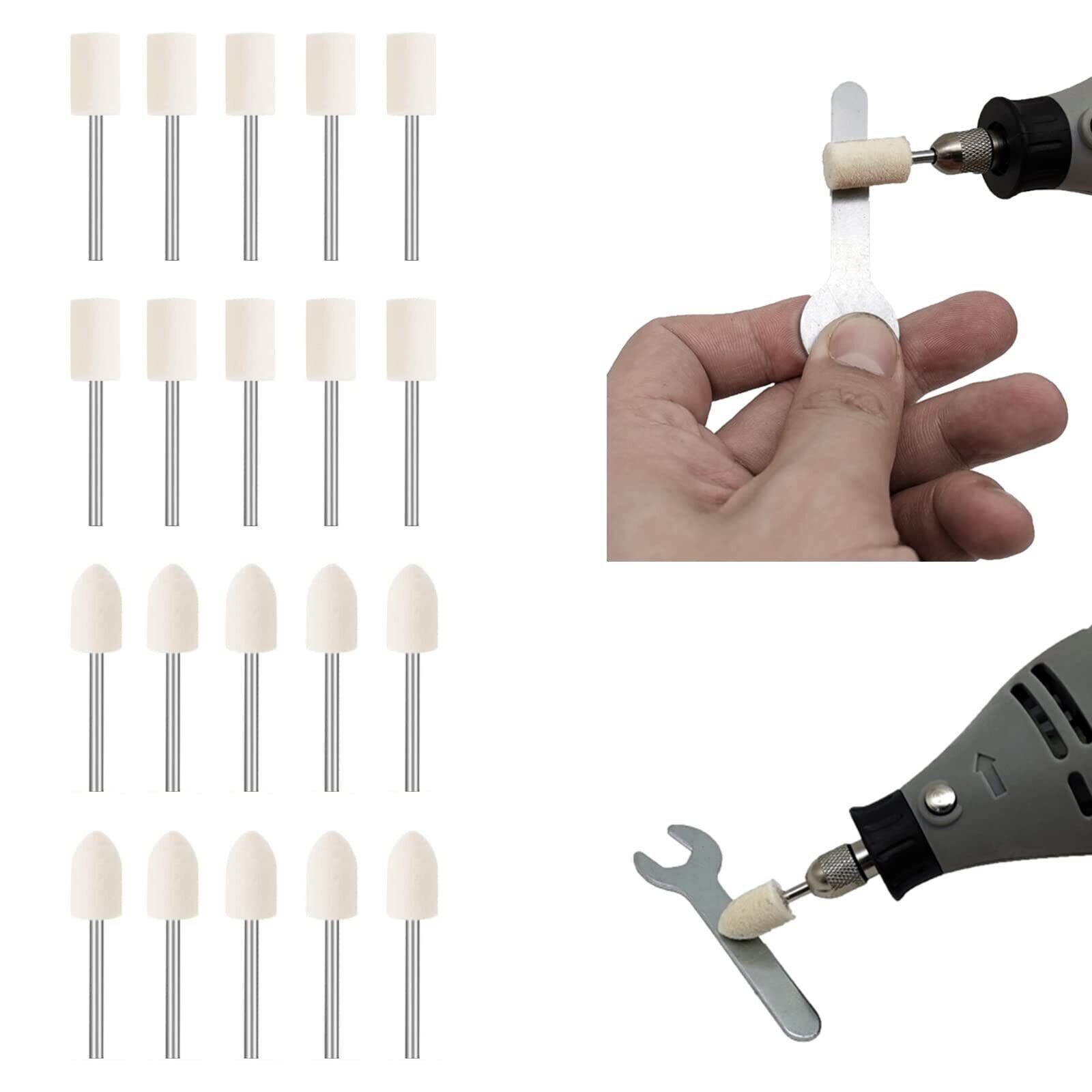 Coollooda 羊毛フェルトバフ 軸付き 研磨フェルト (20本セット) 軸付フェルト 研削ヘッド ミニルーター フエルトバフ 電動ドリル用 仕上げ 精密フェルト 金属磨き 鏡面研磨 砲弾型 円柱型 軸径 3mm | yorozuyamart