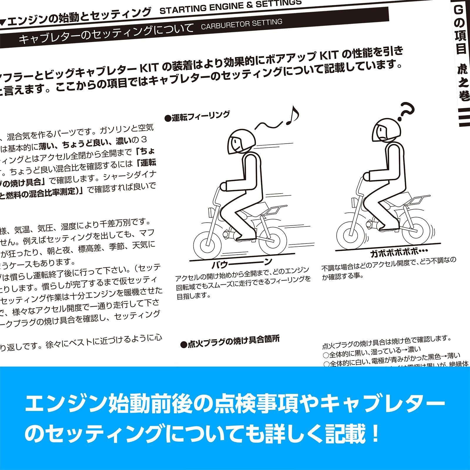 【ボアアップキットの理解を深めよう】キタコのボアアップキットの組み付け方 虎の巻 Vol.4は、モンキーおよびカブ系横型エンジンに特化した詳細なガイドブックです!摩訶不思議なエンジンの魅力を余すところなく伝えることで、ライダーの皆様が安心してボアアップに挑戦できる環境を提供します。
