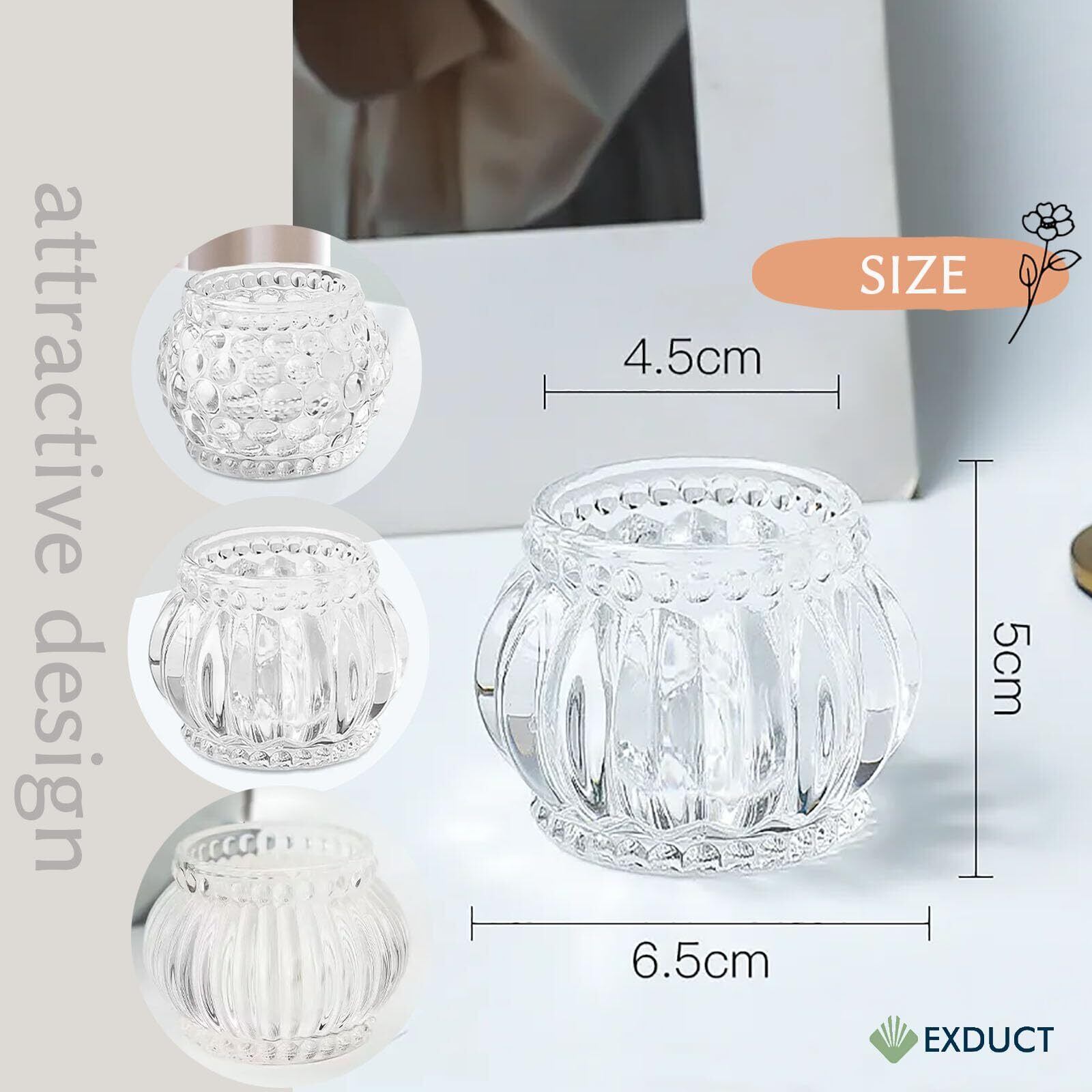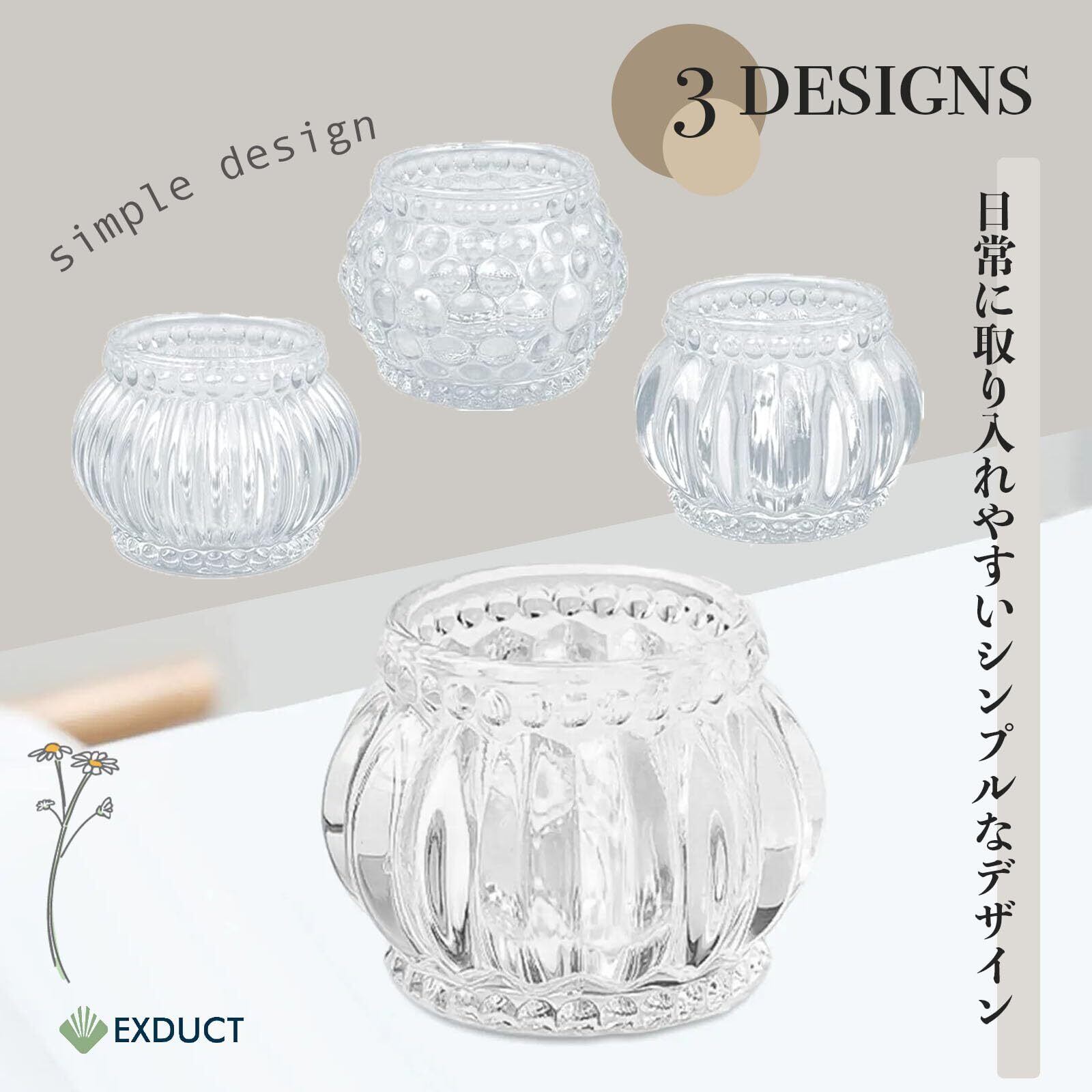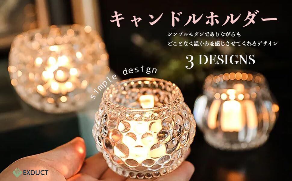 【安全性と高品質な素材】EXDUCTは安全性にも配慮し、耐熱性や頑丈さに優れたガラス素材を使用しています。このホルダーで、キャンドルの灯りを安全に楽しむことができ、リラックスしたひとときを演出します。キャンドルの明かりがもたらす温かさを、ぜひ身近で感じてください。