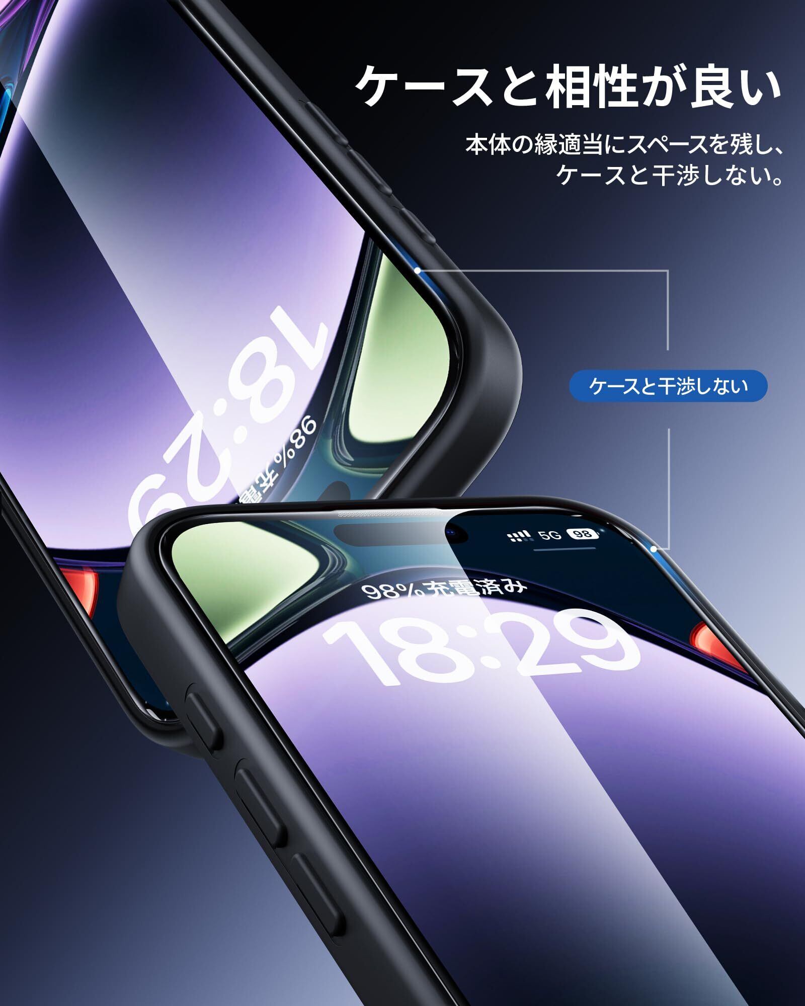【指紋防止技術でクリアな視界を提供】本製品は高透過率の特徴を持ち、画面の鮮やかな色合いや明瞭さを損なうことなく楽しむことができます。指紋防止コーティングが施されているため、使用後もサラサラな状態を保てるのが魅力です。