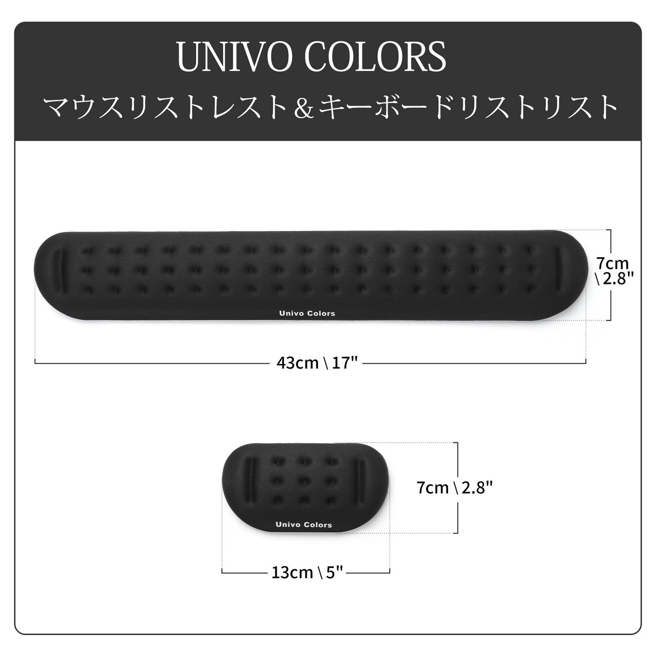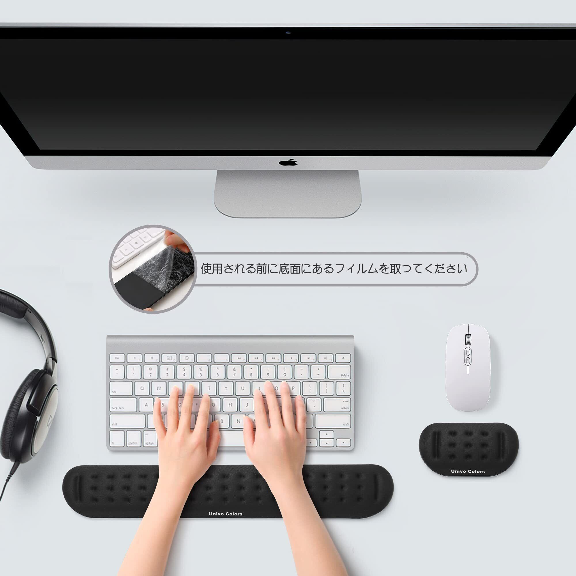 UnivoColors マウスリストレスト/キーボードリストレスト2点セット 手首置き 疲労低減 柔らかい素材 ストレス解放 マッサージホール付き 通気性 あり 肌に刺激なし 人間工学デザイン(ブラック) | yorozuyamart