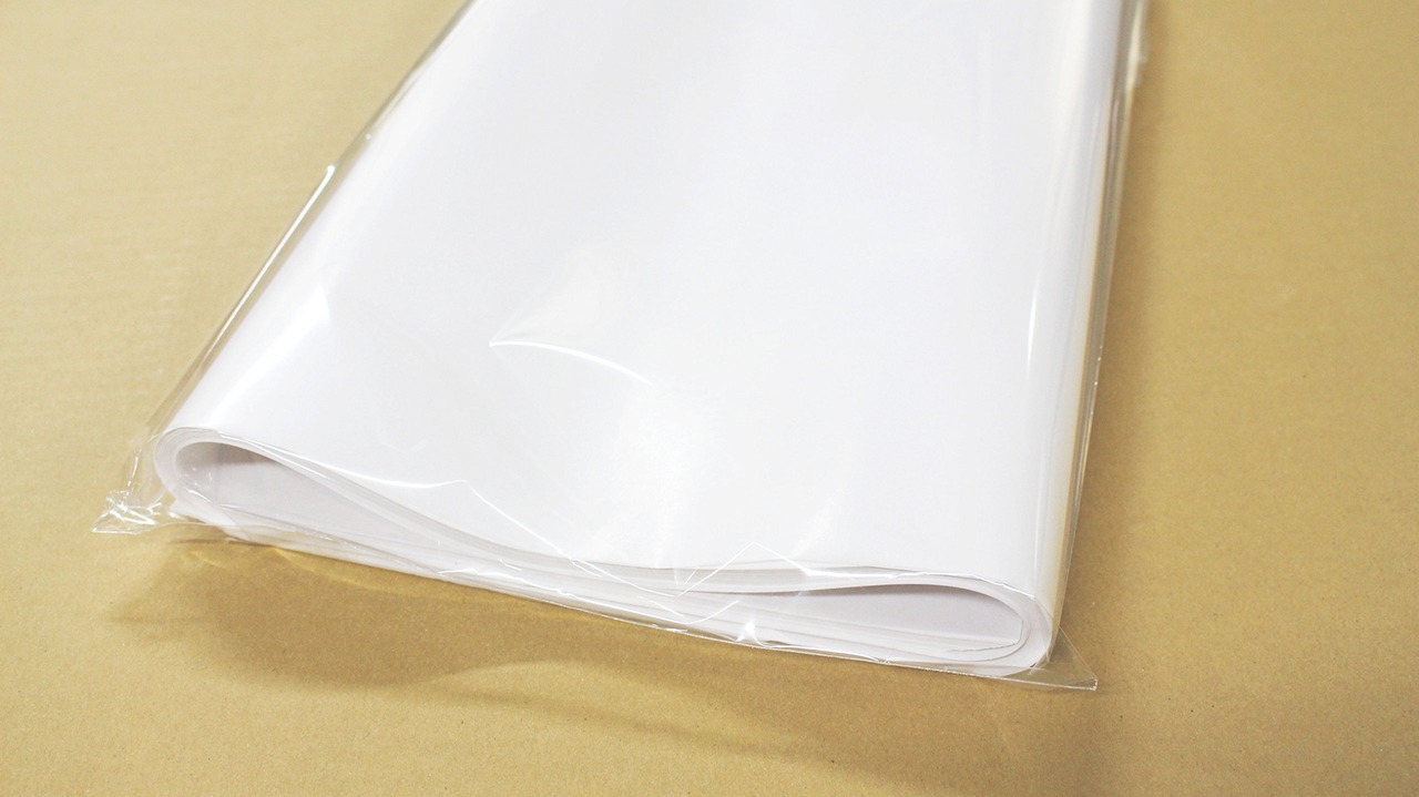 片面ツヤ加工が施されたシンプルな純白の包装紙・ラッピング材です。お花屋さんでもよく使われています。